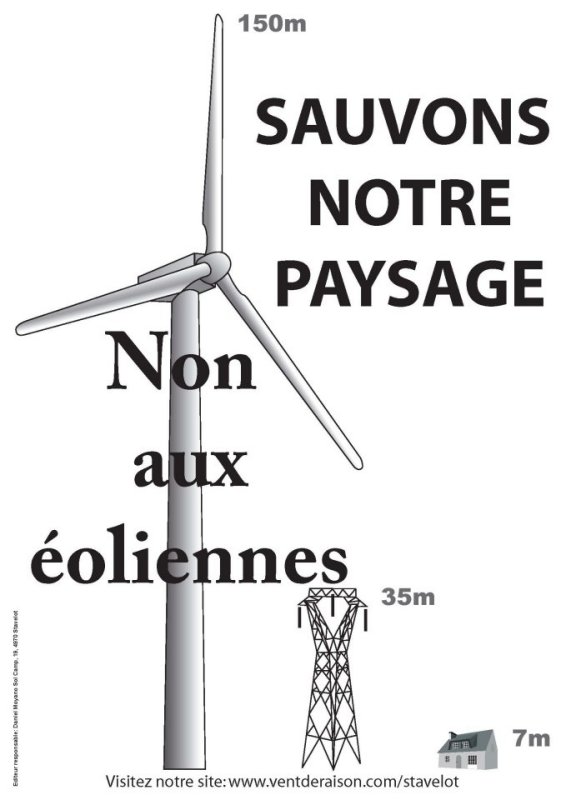 Des éoliennes d’un blanc immaculé, devant un ciel bleu dégage une atmosphère idyllique ... Jusqu’à ce que l’on s’aperçoive que 17 GW d’éoliennes terrestres prévues au Grenelle, cela nous fait 8000 éoliennes de 2 MW. Soit en moyenne 80 éoliennes de 150 m de haut, par département, et encore plus dans les départements côtiers. Conclusion : pour 7 % d’électricité irrégulière [1] , il y en aura forcément une près de chez vous, avec la dévalorisation de l’ immobilier en prime :