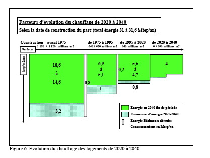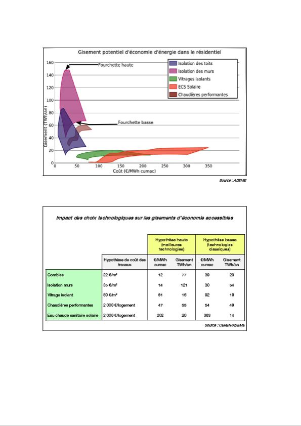 En rénovant l’habitat ancien, il est possible de diminuer d’un tiers la consommation totale par l’isolation, l’utilisation de pompes à chaleur et la cogénération de la biomasse divisent par trois les besoins restant à une vingtaine de GW.