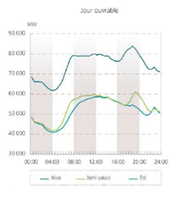 C’est une puissance considérable, en dehors de l’hiver, la puissance électrique en France oscille entre 40 et 60 GW ; en hiver, la demande électrique se situe entre 60 et 80 GW, avec des pointes à 92 GW et peut-être à 108 GW en 2020.