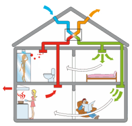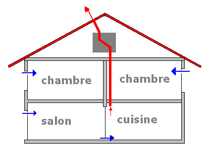 2) La VMC consiste aujourd’hui à prélever de l’air extérieur et à rejeter de l’air de la maison à l’extérieur.