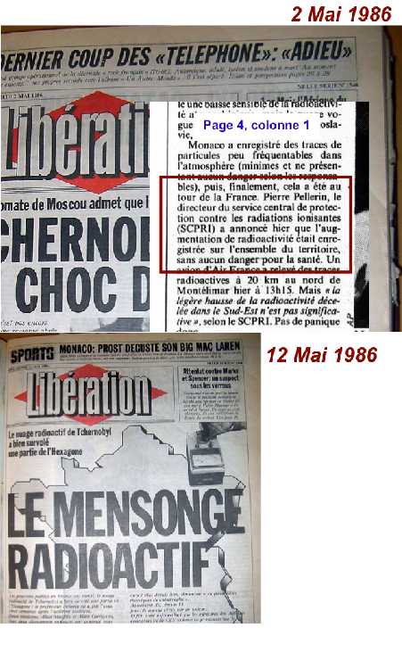 1) L’élévation relative de la radioactivité relevée sur le territoire français à la suite de cet accident est très largement inférieure aux limites recommandées par la CIPR et aux limites réglementaires françaises, elles-mêmes fixées avec des marges de sécurité considérables. Il faudrait imaginer des élévations dix mille ou cent mille fois plus importantes pour que commencent à se poser des problèmes significatifs d’hygiène publique. La distance, la dilution atmosphérique et la décroissance radioactive excluent une telle évolution dans notre pays.