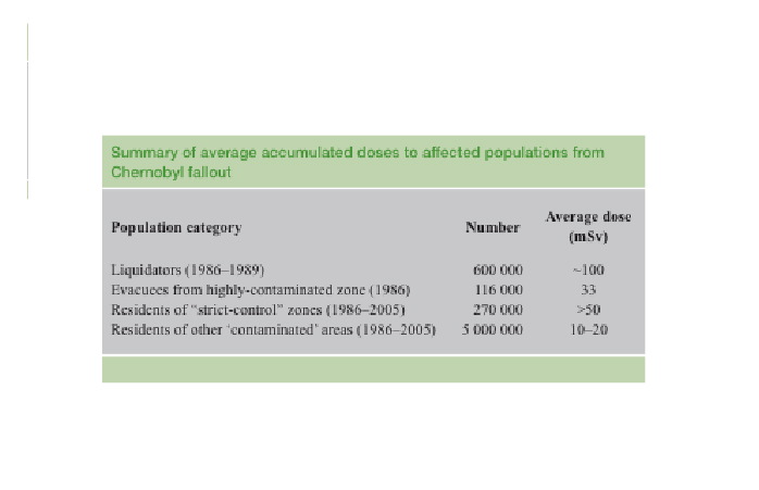 5 millions de personnes vivent dans des zones ayant subi des dépôts radioactifs conduisant à des doses comparables à celle des travailleurs du nucléaire, doses pour lesquelles ont a jamais pu mettre en évidence un effet sur leur santé.