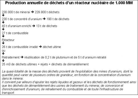 Le « retraitement » ne résout en rien le problème de stockage définitif des déchets de haute activité, y rajoute le problème de la gestion du plutonium et multiplie les flux de déchets.