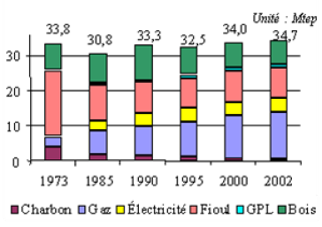 La consommation d’énergie primaire se confond avec celle d’énergie finale car dans les bâtiments construit à cette date utilisait peu le chauffage électrique :